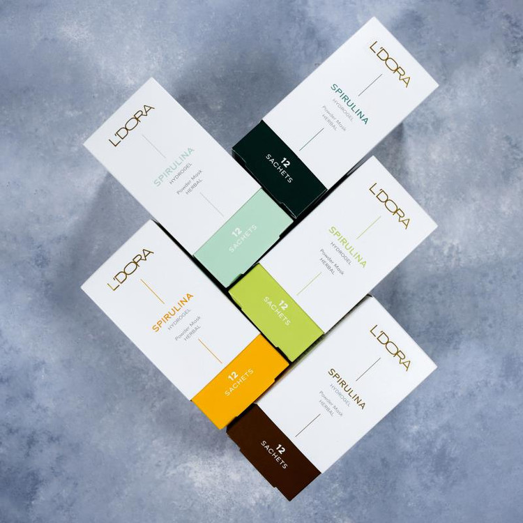 پودر جلبک اسپیرولینا، پودر آکروژل، پودر زغال فعال، پودر بذر کتان، پودر کازئین، پودر خیار، پروتئین ابریشم: گروه سنی : 18 سال به بالا
