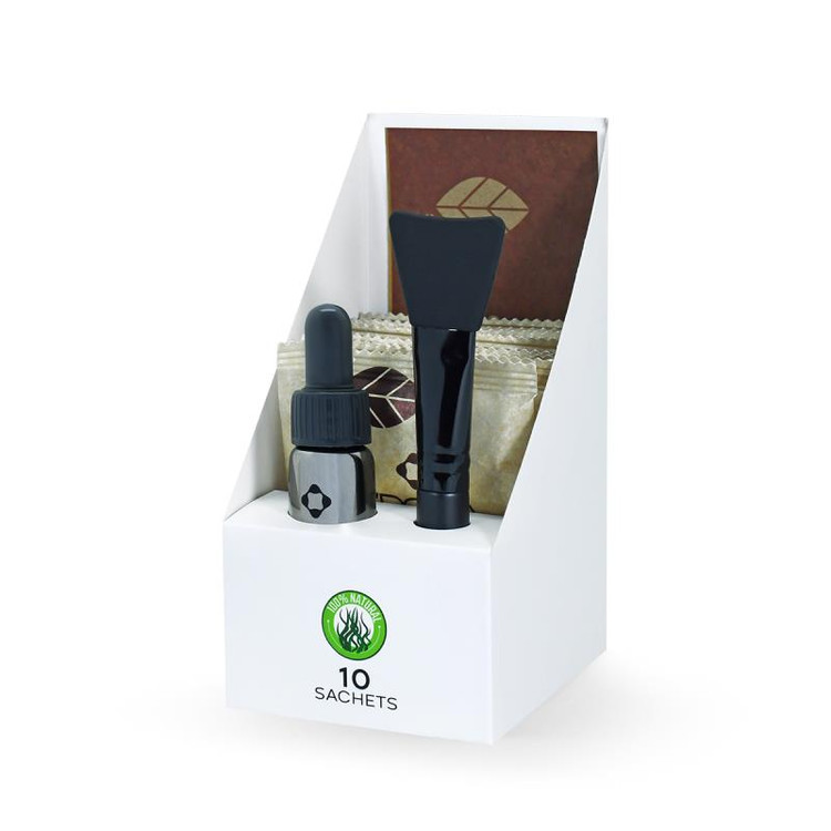 ترکیبات موثر : پودر جلبک اسپرولینا، آرد جو دوسر، پودر گل ختمی، آرد برنج، بابونه، پودر بلوط هندی، چای سبزحجم/وزن : وزن هر ساشه 6.5 گرم